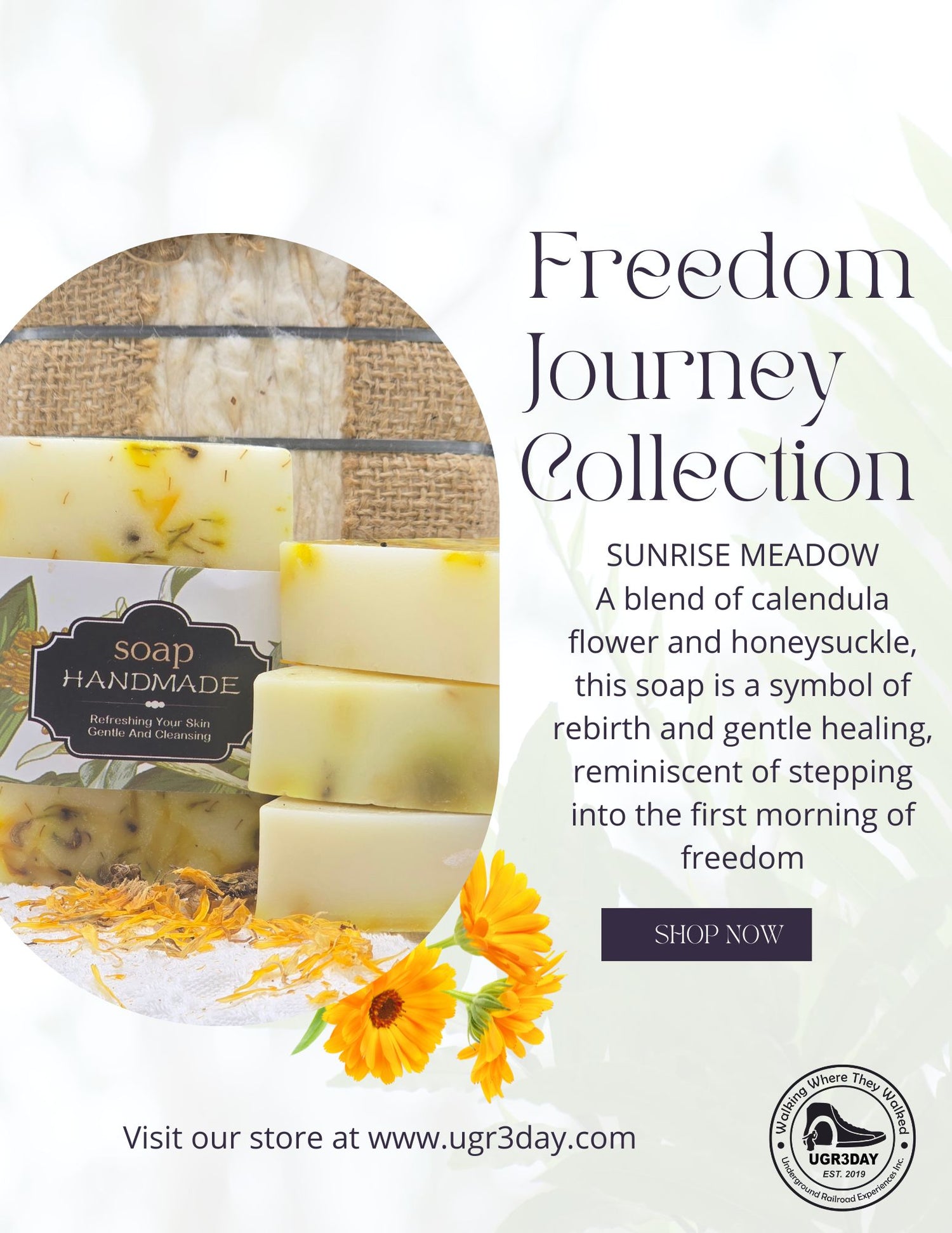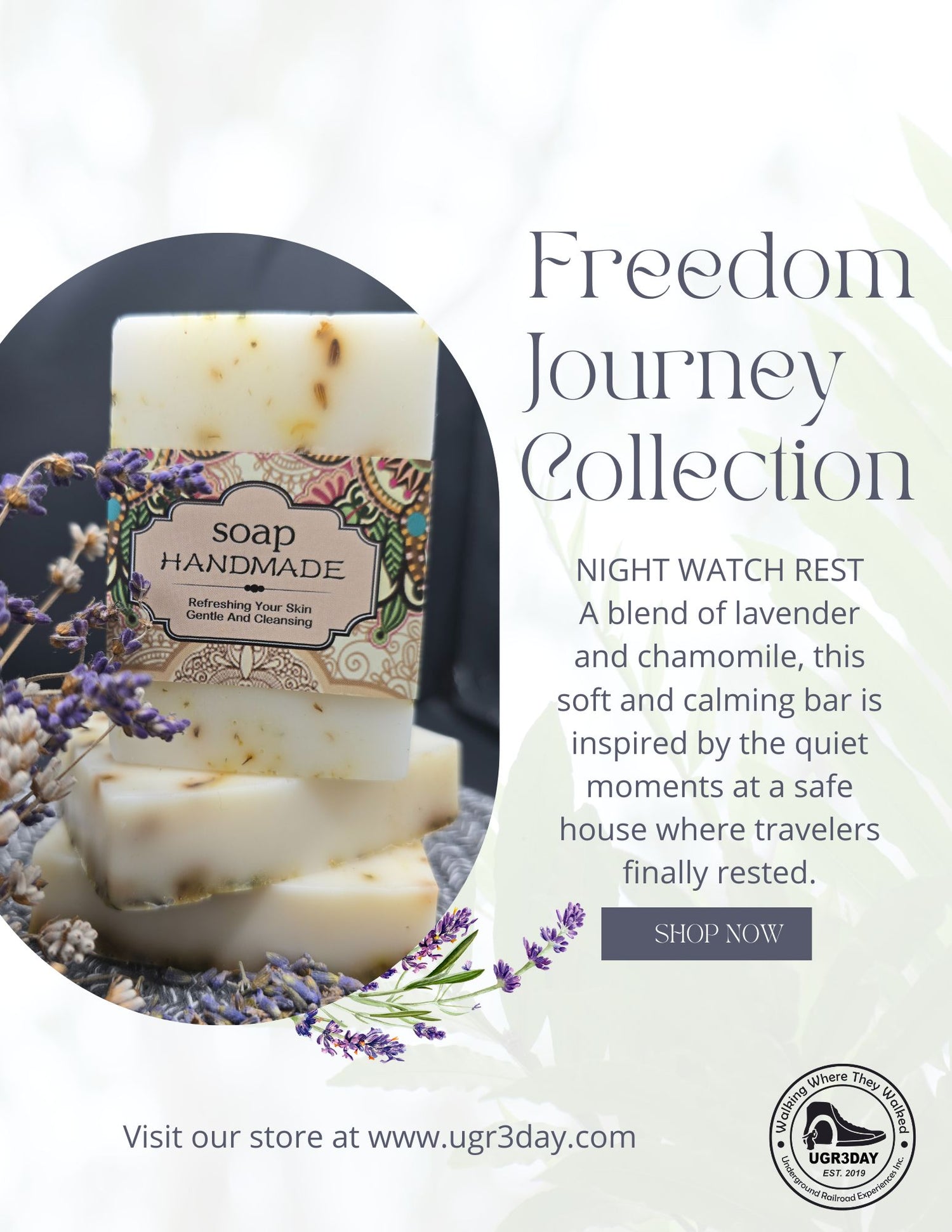 Inspired by the hidden paths to freedom, each blend in the Freedom Journey Collection honors the herbs, courage, and care that sustained travelers along the Underground Railroad. These soaps and bath teas are more than self-care. They are a ritual of remembrance.