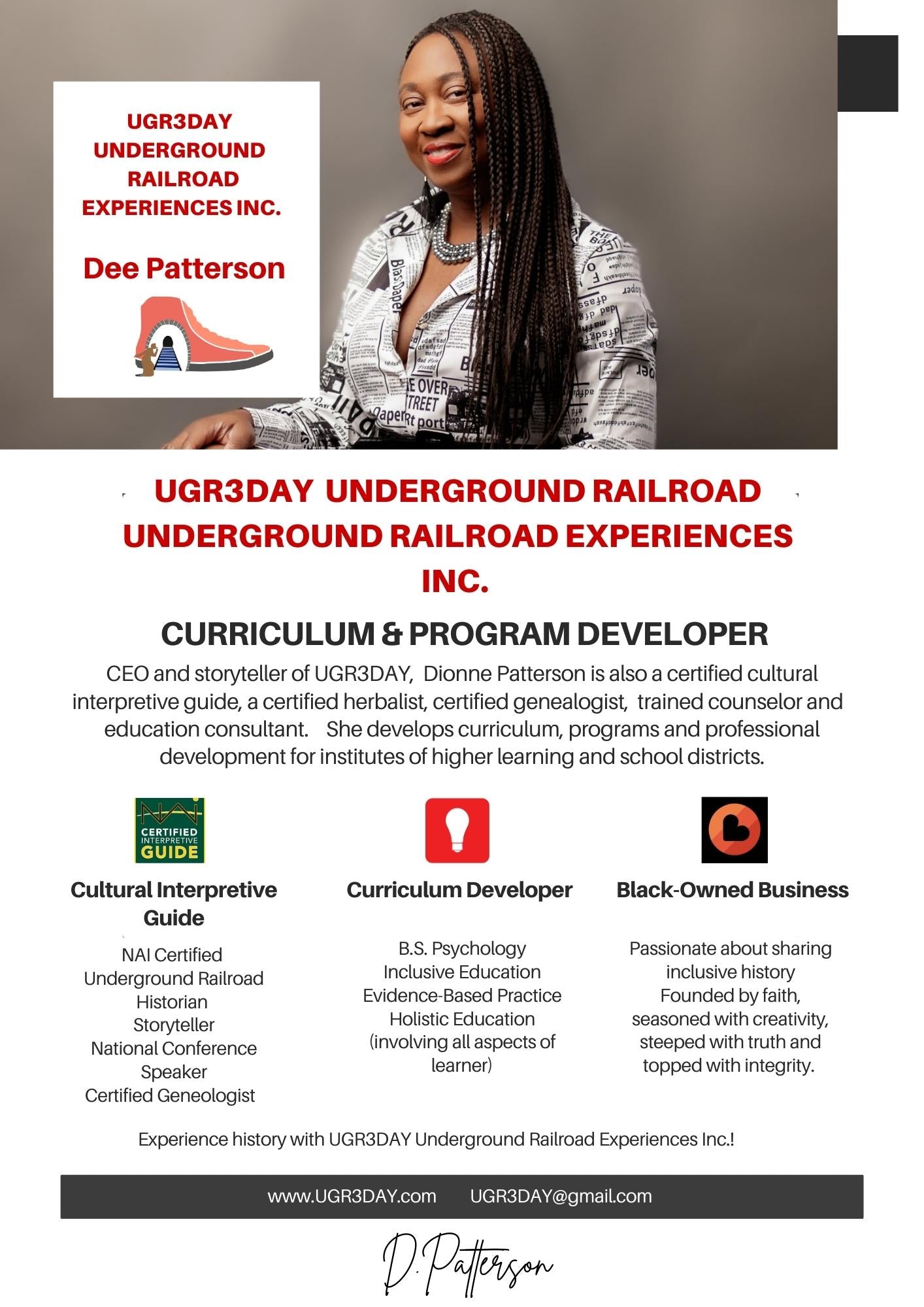With over 30 years of experience working with children and families, Dionne Patterson brings a deep commitment to education, cultural enrichment, and student engagement. As an expert curriculum developer and professional historic interpreter throughout the Mid-Atlantic Region, she specializes in creating dynamic programs that make history come alive.